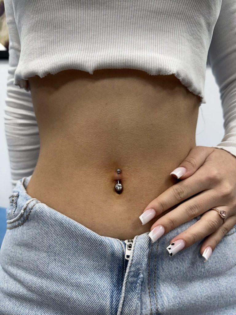 - Aspect Elegant și Versatil: Piercingul buric oferă un detaliu elegant și atrăgător care poate fi accentuat cu o varietate de bijuterii, inclusiv barbell-uri, bijuterii cu cristale sau bijuterii cu pandantive. Este perfect pentru a adăuga un plus de stil și personalitate, fie că alegi o bijuterie discretă sau una mai îndrăzneață.