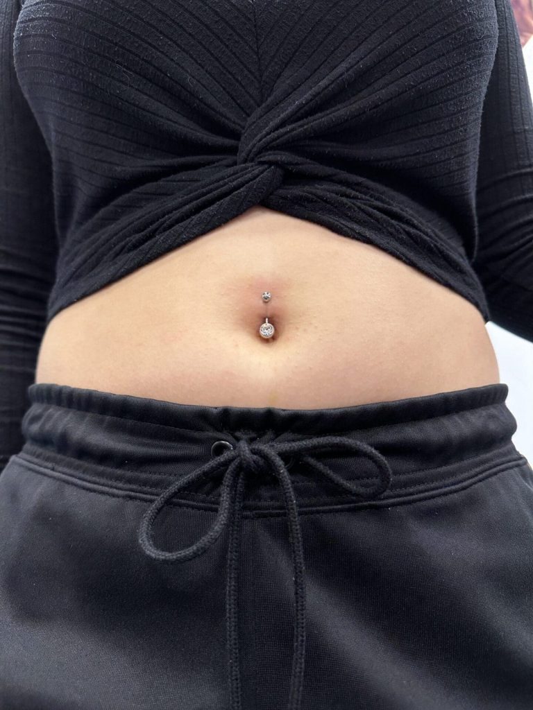 - Versatilitate în Stil: Piercingul buric este extrem de versatil și poate fi personalizat pentru a se potrivi cu orice tip de look. Fie că îți dorești un aspect subtil și elegant sau unul mai îndrăzneț și strălucitor, acest piercing îți permite să experimentezi cu diferite bijuterii și să îți exprimi stilul personal într-un mod unic.